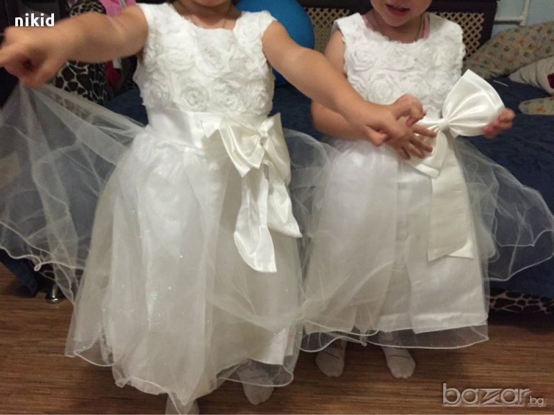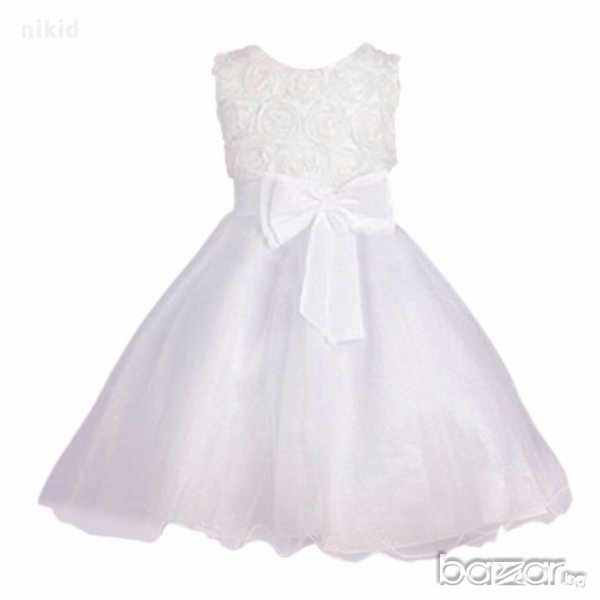 детска официална празнична обемна рокля бяла с пандела кръщене