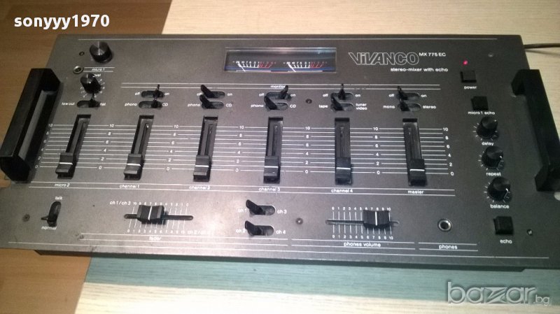 Vivanco mx775ec made in germany-музикантски пулт-внос швеицария...немски пулт миксер за диджеи или у дома...нов внос с стрелкови индикатори-здрави и светят...работи всичко и плъзгачите са здрави и се движат плавно и леко-поръчки само тук в саита! от днес 28.02.22г пращаме със спиди или еконт с преглед и тест след превод на капаро за куриерската услуга поради зачестили некоректни потребители-поръчки само в тук в саита! по телефона и със смс не! краини цени! бартери не правиме! всеки ден нови неща-още над 18000 обяви тук