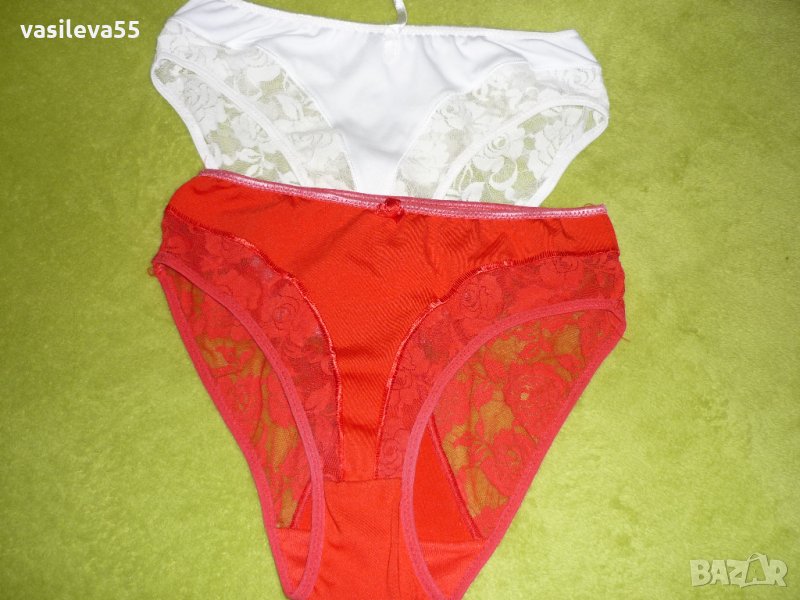 Бикини бяло/червено, памук/еластан с дантела, нови 44-46 – 8лв