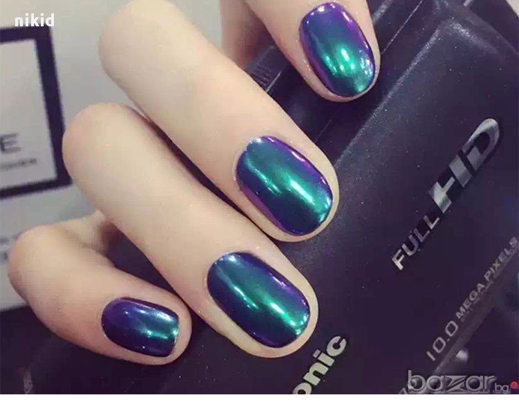 цветен сребрист златист металик огледален ефект прах пигмент пудра глитър с апликатор
