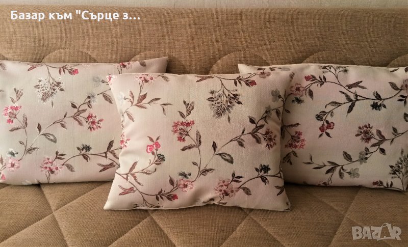 Три калъфки с лице от дамаска - цена 14 лв/бр или 39 лв за комплекта. Възможност за ушиване на пълнеж 5 лв/бр. Размер 45х34 см