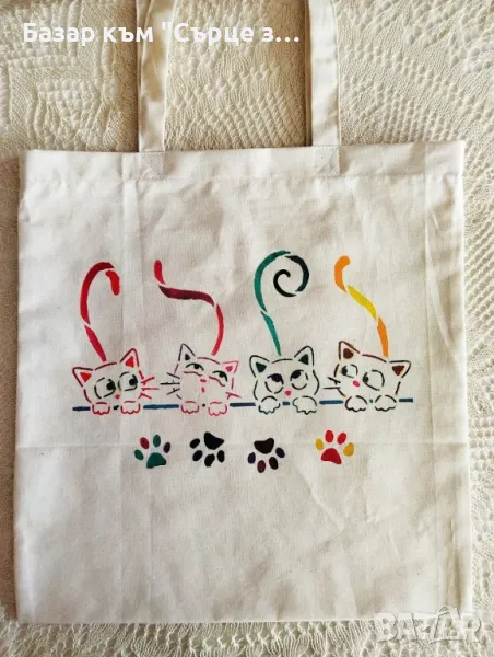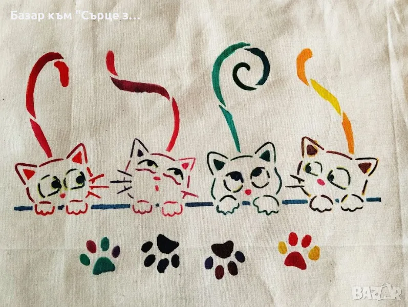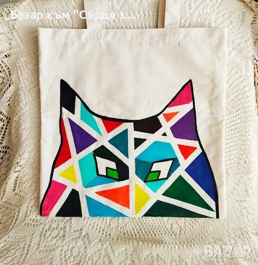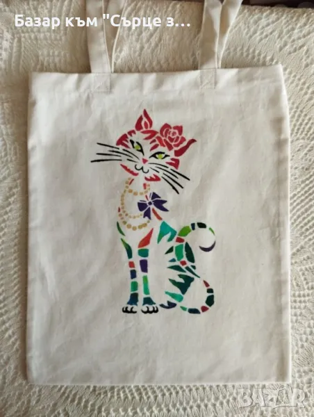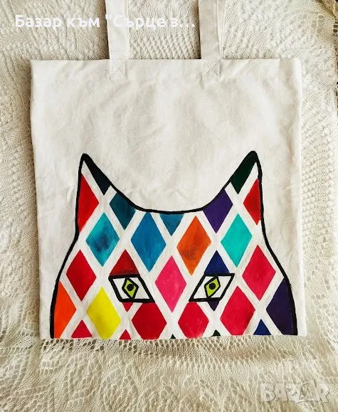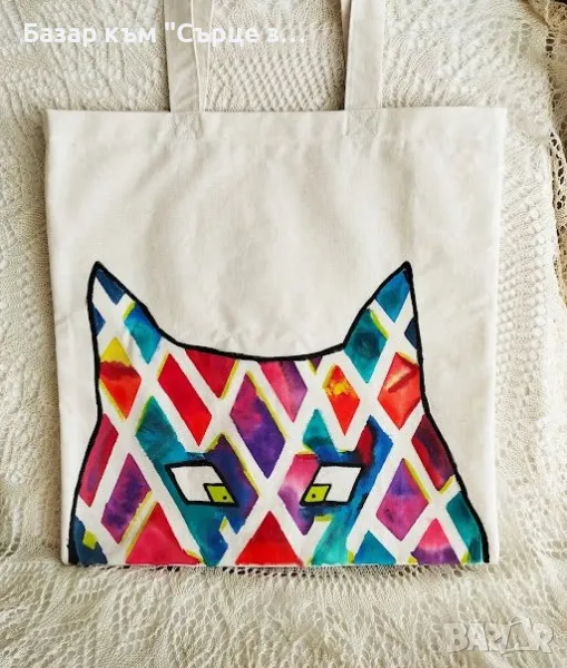Снимки 13, 14 и 15 Рисувани чанти Опасна котка - 22 лв Дълги дръжки