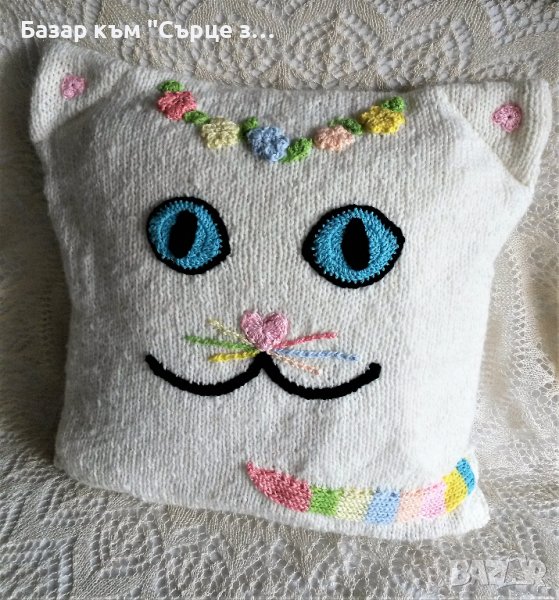 Коте с венче - 30 лв ; 45 х 45 см. ПАН и памук.