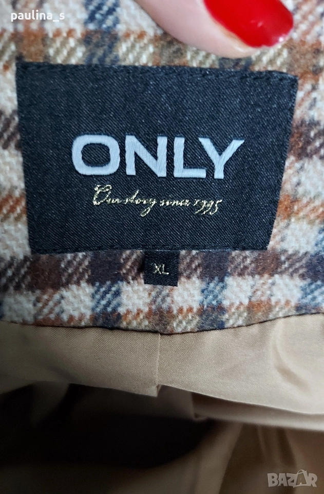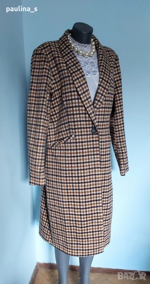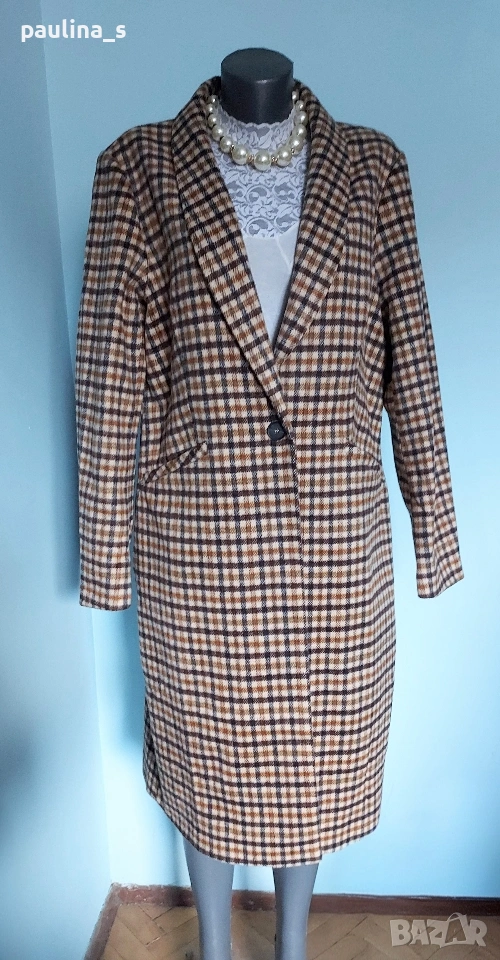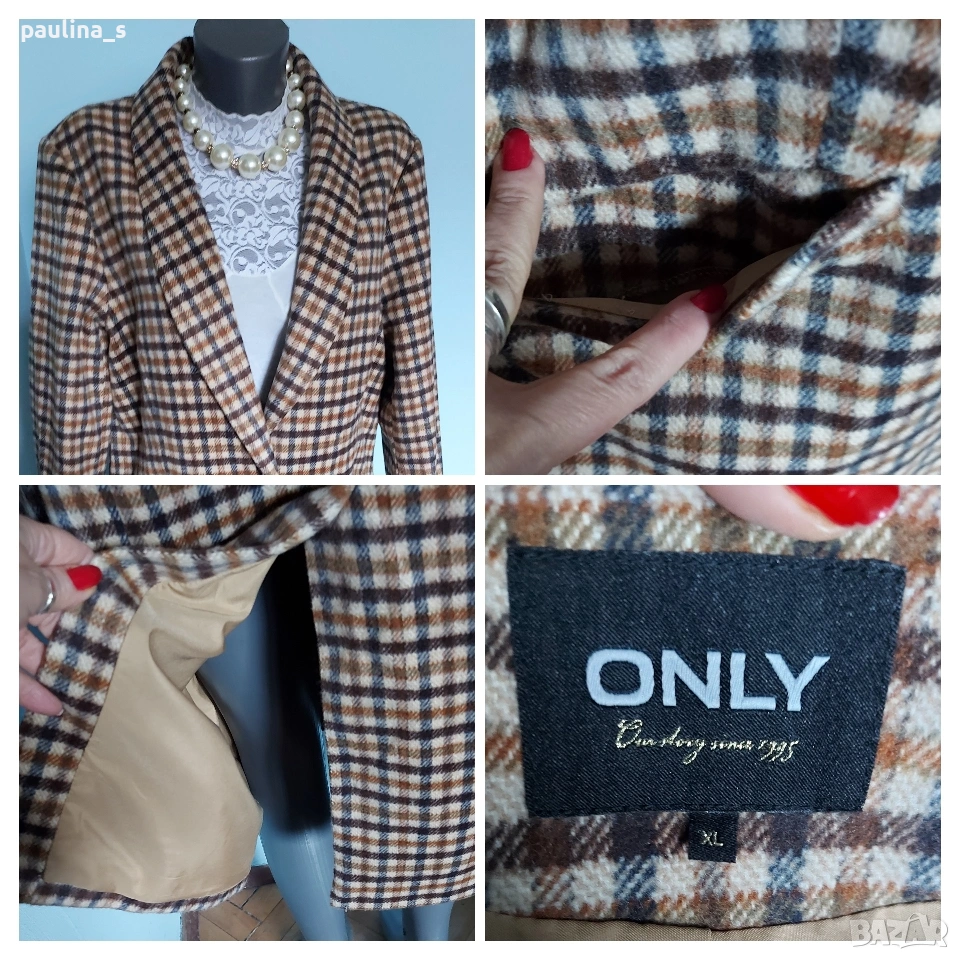 2️⃣. XL / 2XL - "Only". Цената е крайна 45 евро. Дамско палто с шал ревери, едно копче, втален силует и цепка отзад. Разкошна комбинация на цветовете, актуална за годината. Премахнат етикет за състава, съобразена цена. Реалната цена е 140 евро.