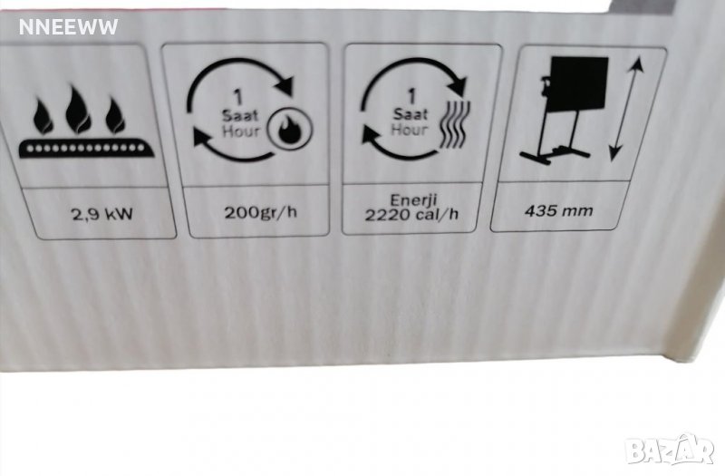 Лъчащ газов отоплител на стойка с възможност за приготвяне на храна в къмпинг условия е с мощност 2900W. Газовият отоплител работи с работен газ от клас Пропан-бутан, разход на газ 0,200 кг/ч, комбинира се само с вентил за ниско налягане. Отговаря на всички нормативни изисквания и европейски директиви. Уредът трябва да се ползва на равен под, дръжте най-малко на 100 см разстояние от горящи предмети, стени или завеси. Ползвай в добре проветриви помещения.