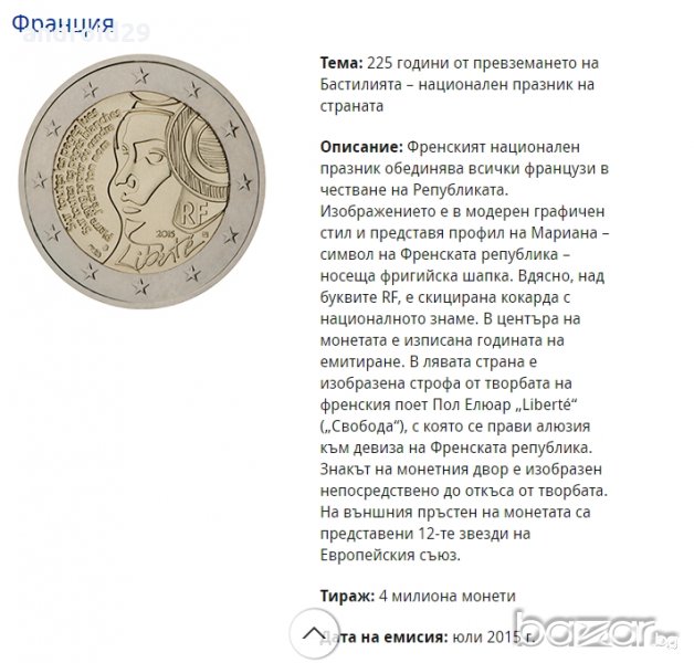 2015 21 Франция 225г от създаването на Републиката 9.80 лв./5.01 €