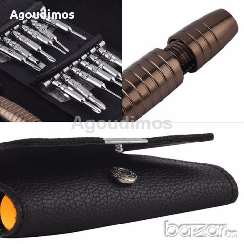 Комплект 25бр. инструменти, отвертки за разглобяване и ремонт на мобилни устройства, електронни часовници, камери, очила, телекомуникационно оборудване(iPhone, iPad, NDS, PSP, SAMSUNG, LENOVO, HTC).