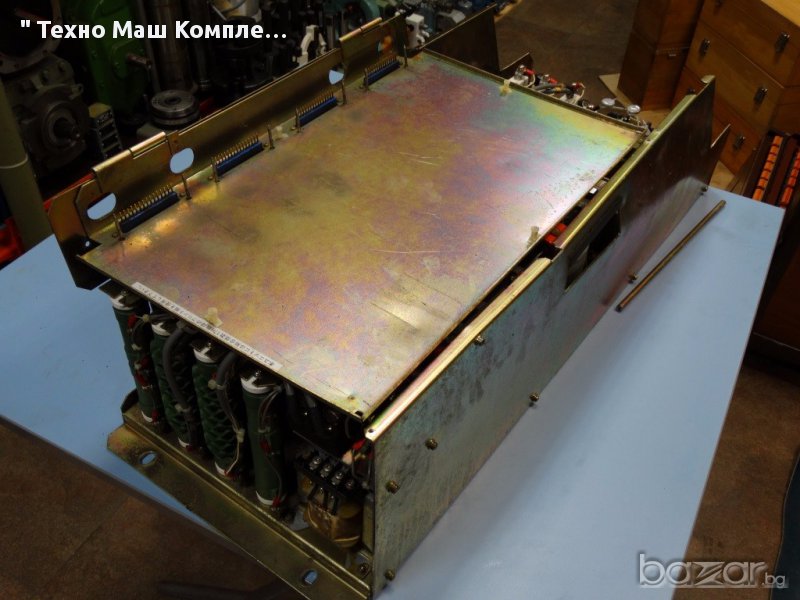 Леко употребяван регулатор за AC мотор-шпиндел FANUC. Регулаторът е предназначен за металообработваща машина MC-32 (МЦ-32). Уредът е технически изправен, но при транспортирането има изкривяване на ламарината, също така липсва и контролната платка