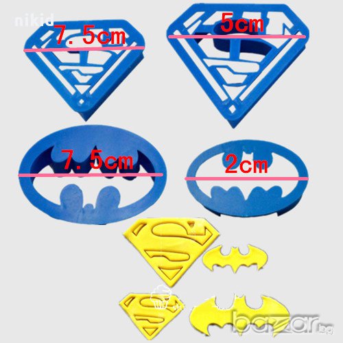 форми пластмасови 4бр. резци резец форма герои Батман Супермен за фондан шоколад тесто сладки мъфини → Обява 16285731