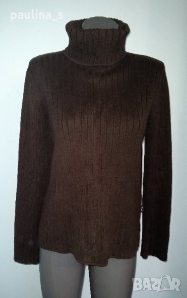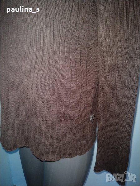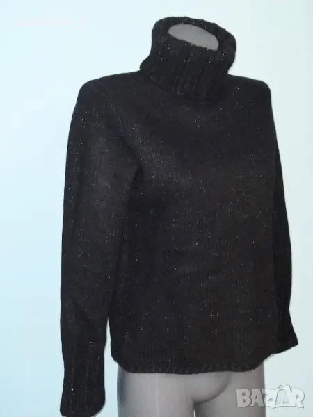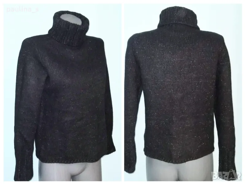 мерино, ламена нишка и поло яка. Цената е крайна,без пазарлъци 54,99лв / 27,5 евро.. Вълнен пуловер с поло яка и дискретна блестяща нишка за разкош. Преждата е меринос, заешки косъм и полиамид, не се степва и не боцка. Истински разкош. Плетивото е рехаво и дава еластичност до 3XL. Не е нов, но е без дефекти.