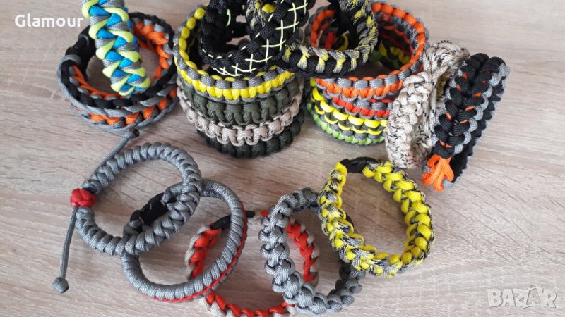 така наречени Survival bracelets, защото е много здраво и леко.Те могат да се носят като моден аксесоар, а в критична ситуация да бъдат разплетени и да се използват в борбата за оцеляване: като се разплете той става около 2,5/3 метра. Размера на показаните гривни е различен,за повече информация пишете/изработва се по даден от вас размер/.