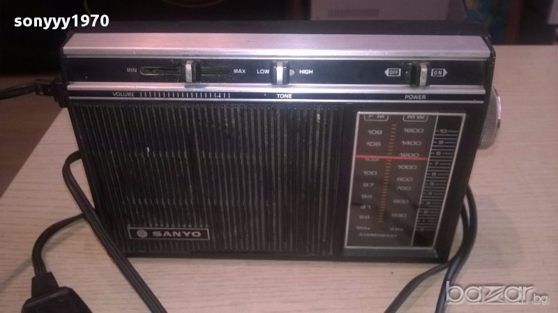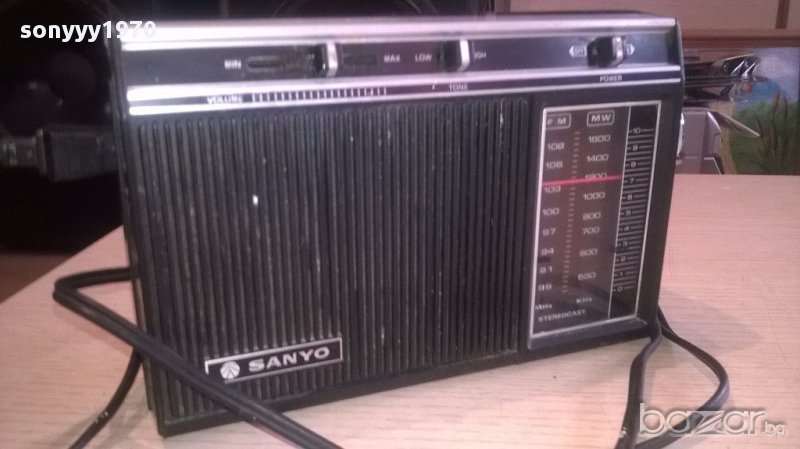Ретро колекция sanyo-220в и батерии 20/12/6см-внос швеицария...за колекция или ползване...нов внос...старо японско...има и оригинален кабел...лови всичко и без антената-липсва и дръжката я няма-поръчки само тук в саита! от днес 28.02.22г пращаме със спиди или еконт с преглед и тест след превод на капаро за куриерската услуга поради зачестили некоректни потребители-поръчки само в тук в саита! по телефона и със смс не! краини цени! бартери не правиме! всеки ден нови неща-още над 18000 обяви тук