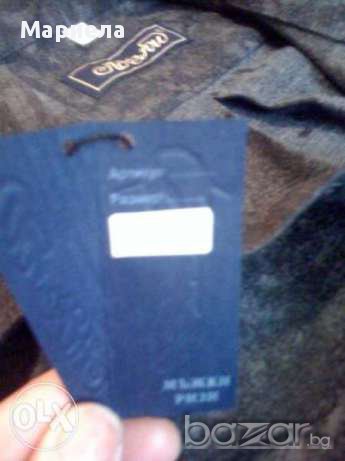 Чисто нова мъжка риза със страхотен десен. Подарък е на мъжът ми, но му е голяма. Размер 52. Размери: дължина 82см; ръкав 63см; широчина подмишници 60см; широчина рамене 53см.