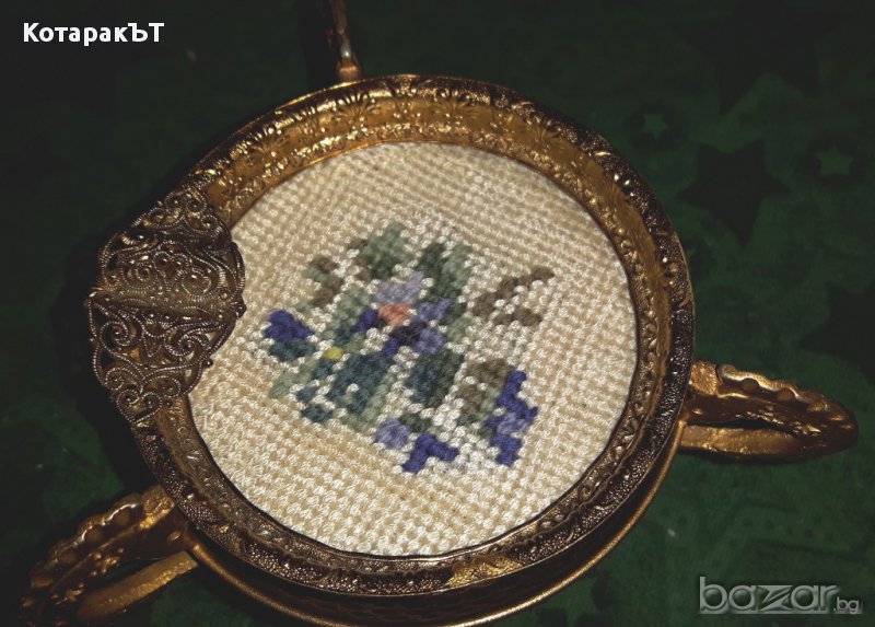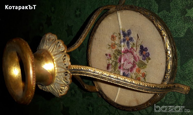 - Свещник, в основата картина - цветя в/у платно, покрита с много тънко стъкло /има пукнатина, видна от снимките/