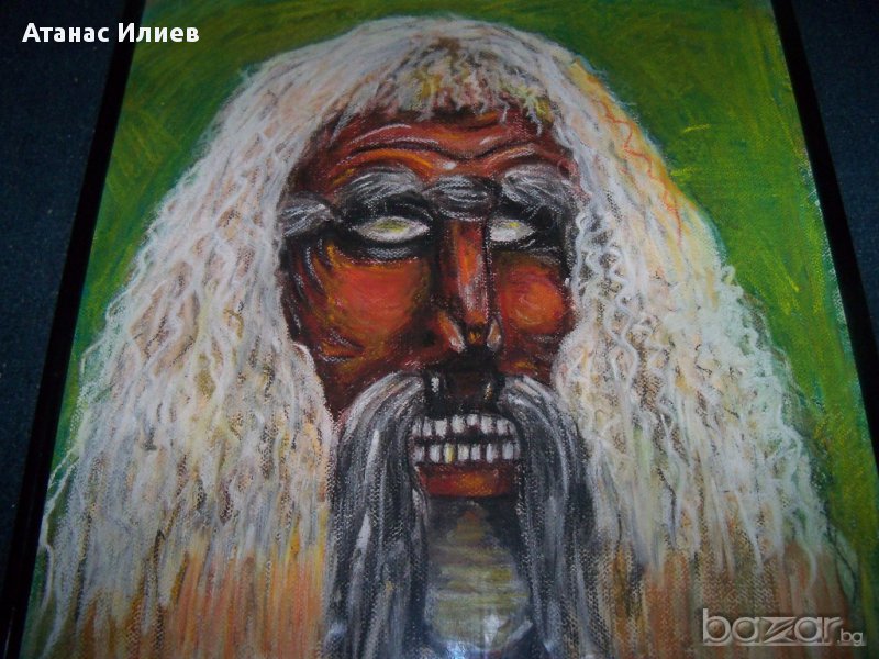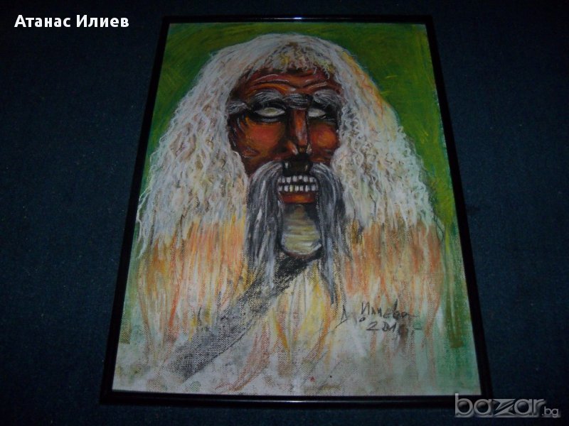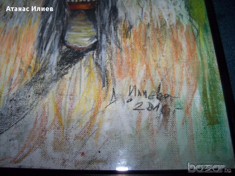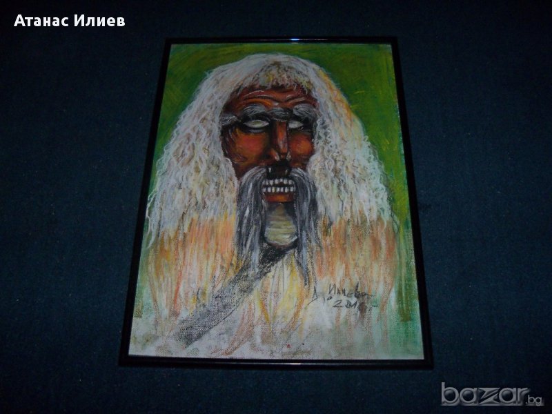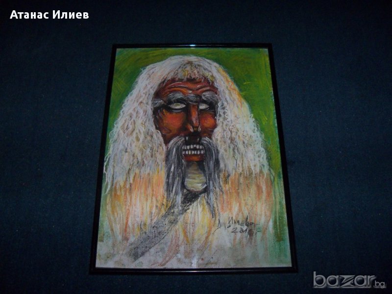 "Кукер" художник Десислава Илиева. Техника сух пастел. Размери с рамката 31х43 см. Авторката е завършила специалност сценография, ученичка на известните видински художници Чавдар Петров и Цветан Тимотеев. Нейни картини са притежание на колекционери в страната и чужбина.