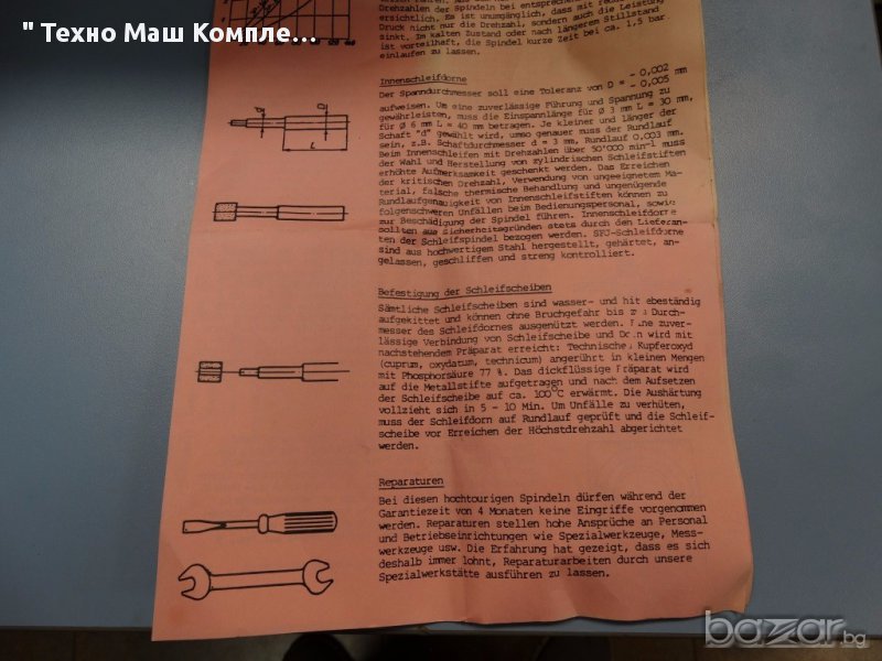 1. Високооборотен прецизен шлайф-шпиндел, прецизен, производство на немската фирма J.Fischer, тип JP, 80 000 min-1