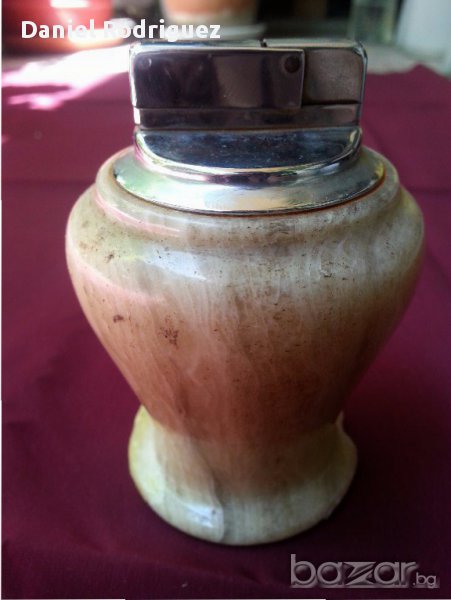 Настолна Стара Германска Масивна Запалка от Полускъпоценен Камък Оникс. Височина 90мм , тегло около 500 грама. Нуждае се от зареждане с газ и ново камъче.Състоянието е видно.