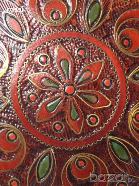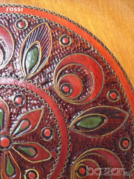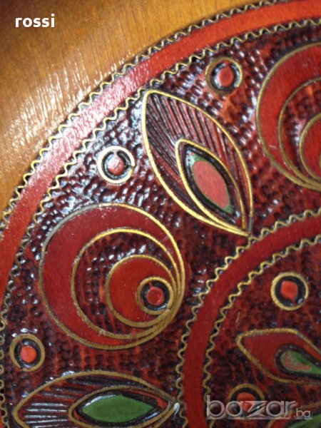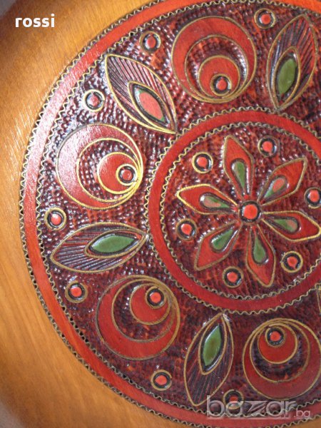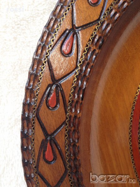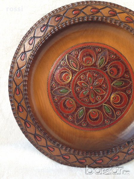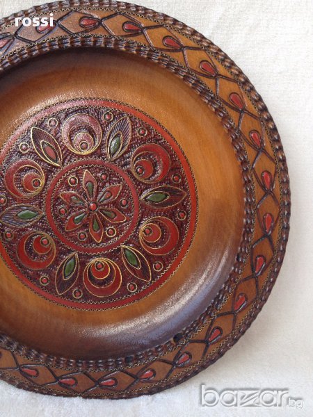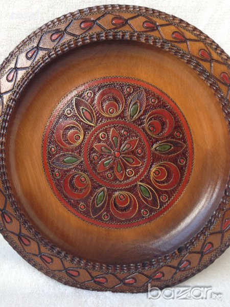 Много красива, уникална старинна чиния от дърво,