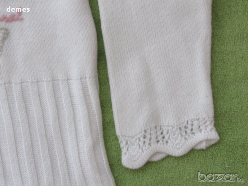Бяла машинно плетена блуза за момиче, ръст 98/104 и 110/116, нова → Обява 16377594