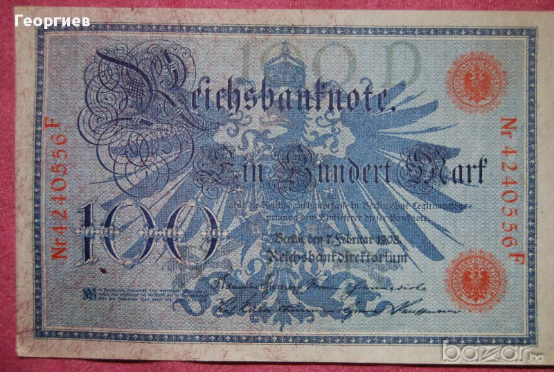 100 марки 1908 Германия червен печат 4240553 → Обява 16383576