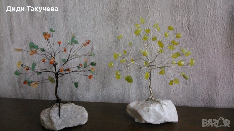 Дръвчетата са ръчно изработени от естествени кристали и полускъпоценни камъни.