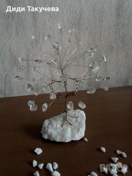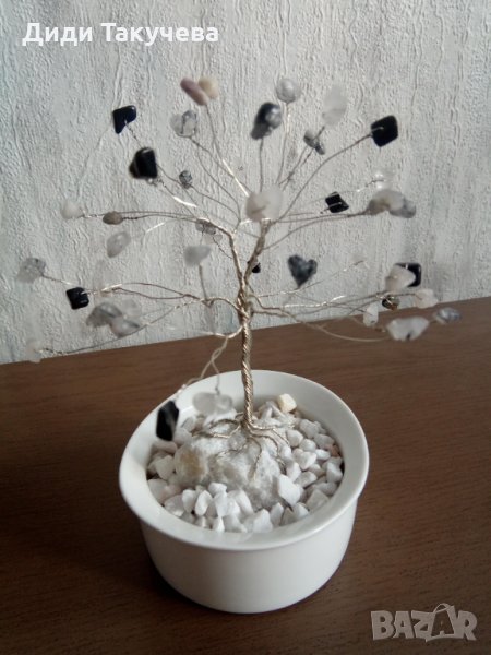 Получавате красиво и стилно дръвче състоящо се от каменна основа, алуминиева (бижутерска) тел и различни по вид естествени камъни и кристали, като всеки камък засилва различни качества в човека.