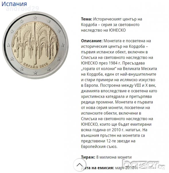 2010 7 Испания 2 EURO / ЮНЕСКО: Историческият център на град Кордоба 10.40 в./5.32 €