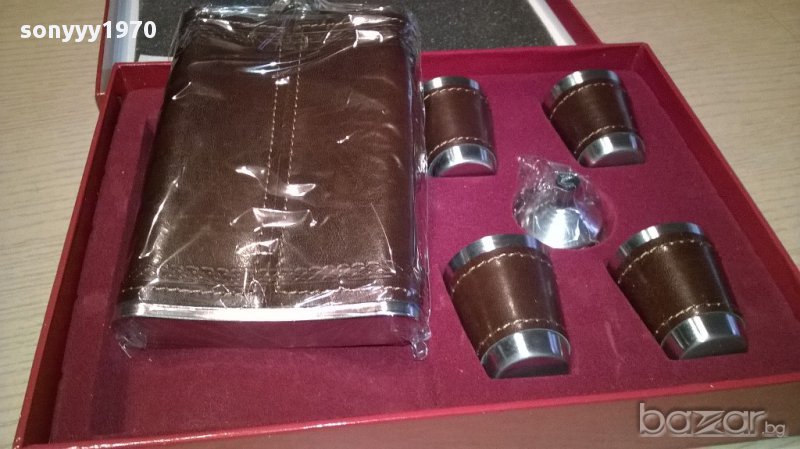 Сувенирна метална манерка с дозатор и четири декоративни чаши. Предлагат се в красива подаръчна кутия. Вместимост на манерката 266 ml, 9oz. Размери на кутията - 24х18х4 см-пращаме със спиди или еконт с преглед и тест след превод на капаро за куриерската услуга поради зачестили некоректни потребители-поръчки само тук в саита! по телефона и със смс не! краини цени! бартери не правиме! ПАРИ НЕ ВРЪЩАМЕ! всеки ден нови неща-още 2-3 наши обяви тук