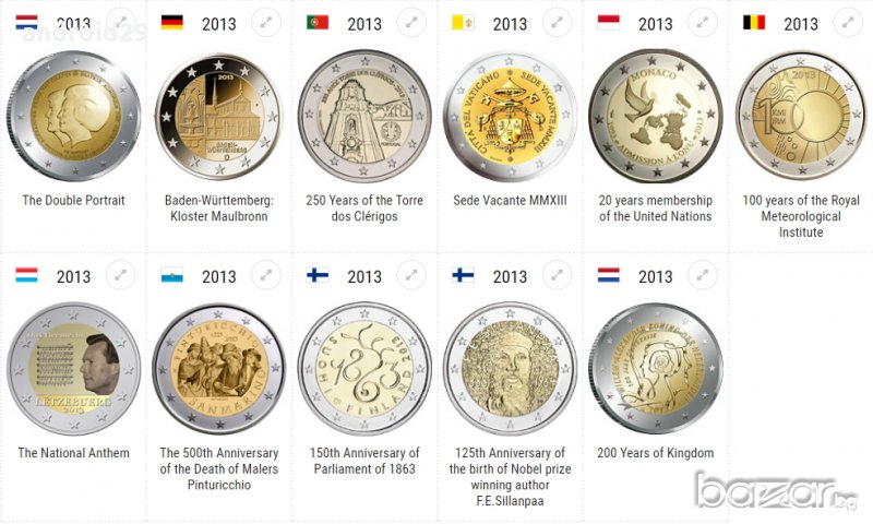 2 Евро монети (възпоменателни) емитирани 2013г
