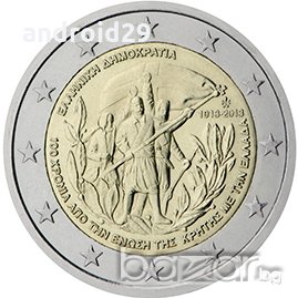 2013 22 Гърция 2 EURO / 100г от съюза между Крит и Гърция 15.00 лв. 7.67 €