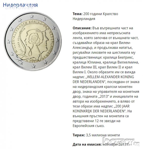 2013 14 Холандия2 EURO / 200г Кралство Холандия - Вилем-Александър 9.80 лв./5.01 €