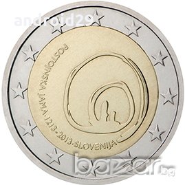 2013 12 Словения2 EURO / 800г от откриването на пещерата Постойна Яма 15.20 лв./7.77 €