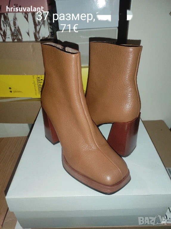 1. Цена 65 лв 38 размер стелка 24,3см според мен са подходящи и за 37 номер. Естествен велур. Ток 9см