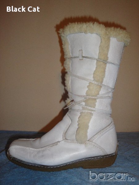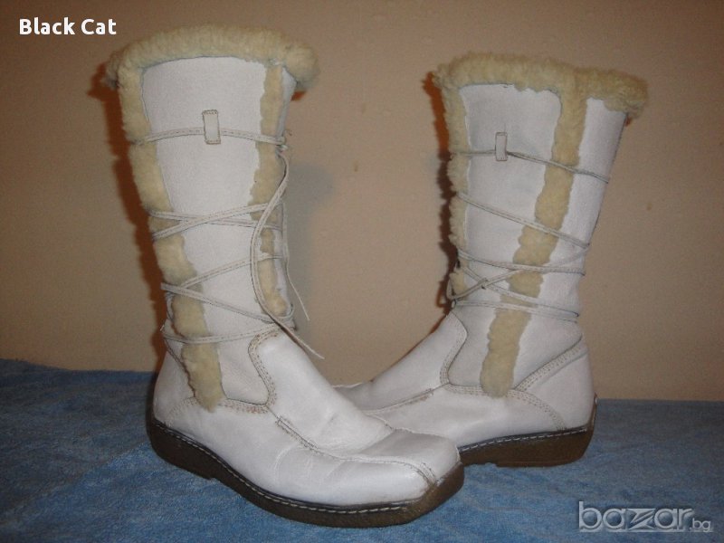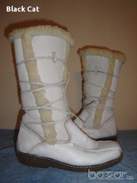 Описание: Бели кожени дамски ботуши (тип апрески) "Polaris" ("Поларис"), естествена кожа и агнешка вълна
