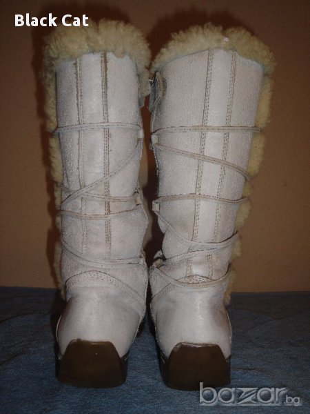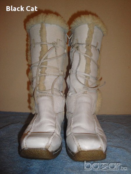 Бели кожени дамски ботуши (тип апрески) "Polaris" ("Поларис"), естествена кожа и агнешка вълна, боти