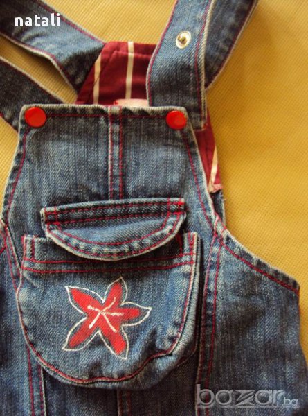 Страхотен дънков гащиризон. Български. Размер по етикет 74 см, но може