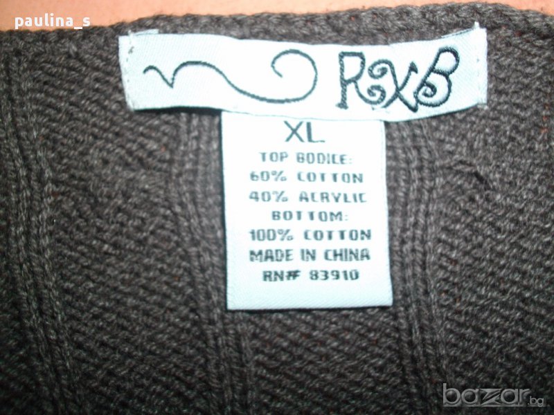 1. "RHB" women's clothing. Цената е 17,99лв. Дамска брандова плисирана туника с бюстие и предно закопчаване, наборът започва от нивото под бюста-плисирани дипли, материята е памук с акрил(за бюстието)-има еластичност, плисирана част 100%памук. Бюстието е с декорации на плетивото от красиви плетеници. Голям размер. Без дефекти и етикет, нова е.