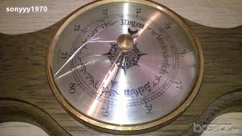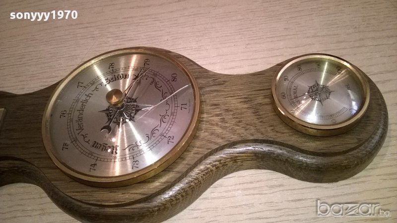 Ретро барометър-40/12см-дърво и месинг-внос швеицария...красив и стилен нов внос...дребни забележки видими от снимките-пращаме със спиди или еконт с преглед и тест след превод на капаро за куриерската услуга поради зачестили некоректни потребители-поръчки само тук в саита! по телефона и със смс не! краини цени! бартери не правиме! ПАРИ НЕ ВРЪЩАМЕ! всеки ден нови неща-още 2-3 наши обяви тук