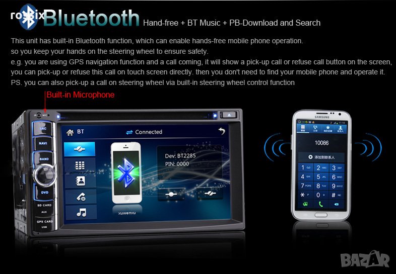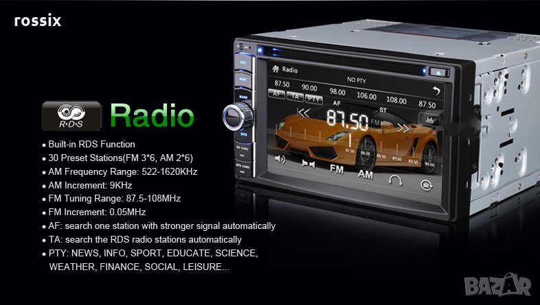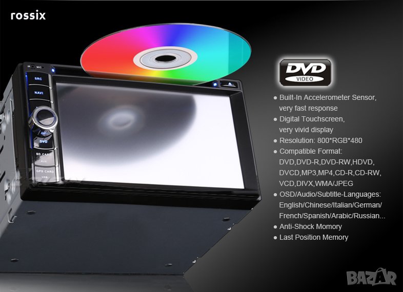мултимедията и таблото на автомобила), преходници, антенни адаптери или други допълнителни аксесоари. за Volkswagen, Peugeot, Mercedes, Opel, Citroen, Ford, Toyota, GM, Nissan, Honda, Chevrolet, GMC, Buick, Pontiac, i други Поддържа всякакви формати аудио и видео, поддържа 3G usb модем , има блутут за връзка с телефона Ви. Универсално е и може да се вгради във всяка една кола с размер 2Дин. размери : 17.8 cm x 16 cm x 10 cm ширина - 17.8 cm x дължина (навътре в таблото)- 16 cm x височина - 10 cm