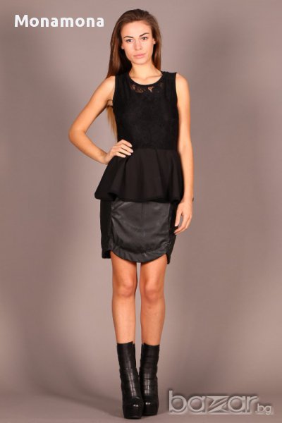 Нова рокля Pause, дантелен топ, кожена пола. Уникален модел, чисто нова, размер М/Л. На врата се закопчава с копче и е с цепка на гърба. Гръдна-талия-ханш в неразпънато състояние: 80-74-90 см.