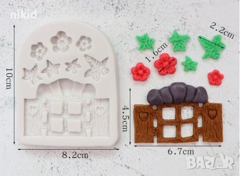 Прозорец за къща къщичка с листа бръшлян силиконов молд форма за торта украса фондан → Обява 16453164