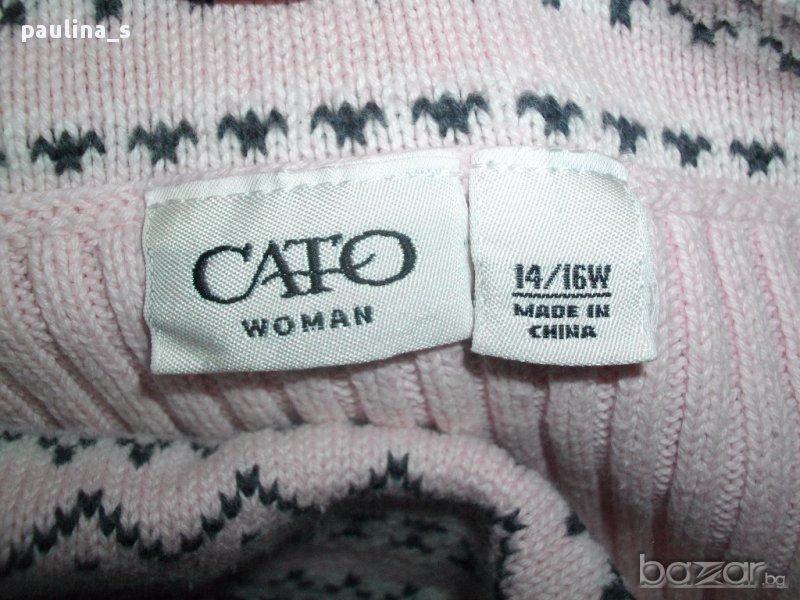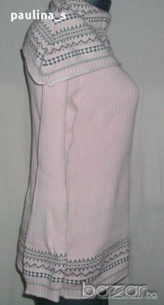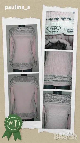 1️⃣ . L / 2XL - Розов пуловер тип туника "Cato" woman Цената е крайна, без пазарлъци 20 евро. Разкошен дамски пуловер тип туника с богата шал яка в бебешко розово и сиви орнаментирани декорации! Материята е 100% плътен памук, плетивото дава еластичност. Подходящ за алергични към синтетиката кожи. Покрива няколко размера L / 2XL. Без забележки, като нов.