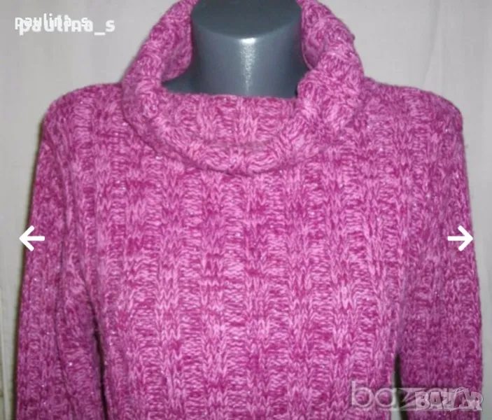 2️⃣. L / 2XL - "Aeropostale". Цената е крайна, без пазарлъци 19 евро. Цикламен меланж пуловер. Дамски пуловер с поло яка в цикламено, бранд "Aeropostale" има и ламена нишка за шик! Прежда акрил(много мекичка за носене на голо) и ламена нишка. Плетивото е еластично, но не прилепва към тялото, не очертава коремчета.