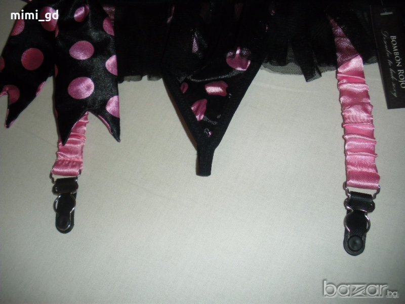 материята е сатен. Жартиерите са 2 броя(само отпред)