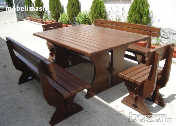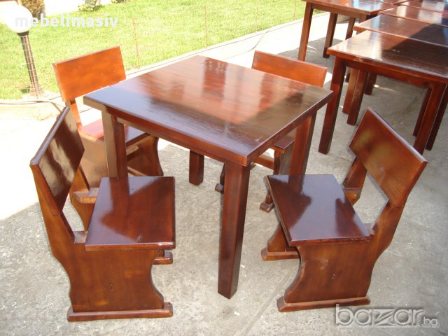 Изработка на баварски маси и столове от масивно дърво. Маси, пейки и столове по поръчка на клиента. Голямо разнообразие от модели.