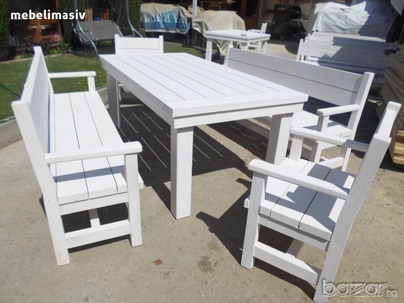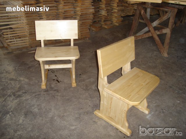 Дървени маси и столове за механи, барбекюта и градини. Разнообразие от модели на маси, столове и пейки от масивно дърво. Изработка по поръчка на клиента.