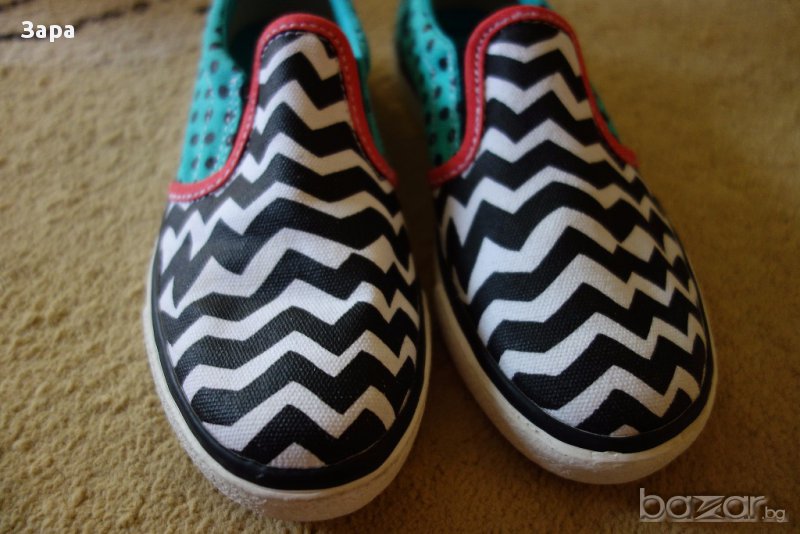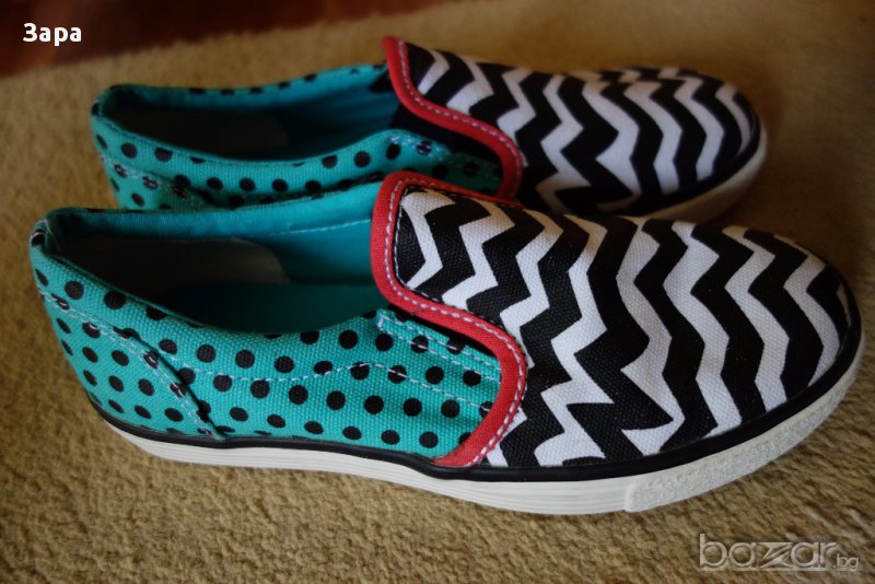 Обувките се намушват, с ластици са отпред, няма връзки, нито лепки. Доста наподобяват Vans.. чисто нови са, без кутия, стелката им е 21см. За нормално или тясно краче са. Фит F