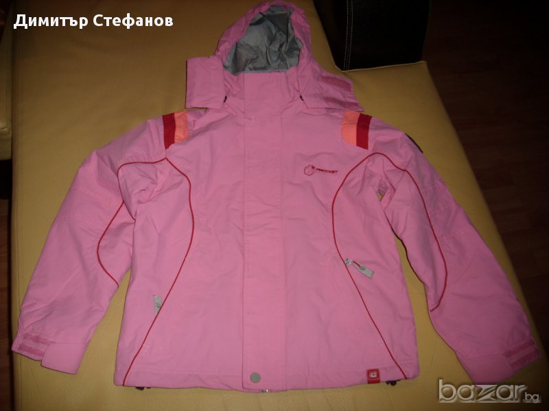 Якето е обличано 2-3 пъти и е неразличимо от ново,система Geotech 3.0,воден стълб 3000 за дъжд вятър и влага.Качулката е на цип и може да се маха.по етикет за ръст 140см.размери дължина 50см. ширина 45см.ръкав дължина 56см./40см.Купувано е от Германия за 85 евро.Яке за ски ,сноуборд,snowboard или ежедневно носене.