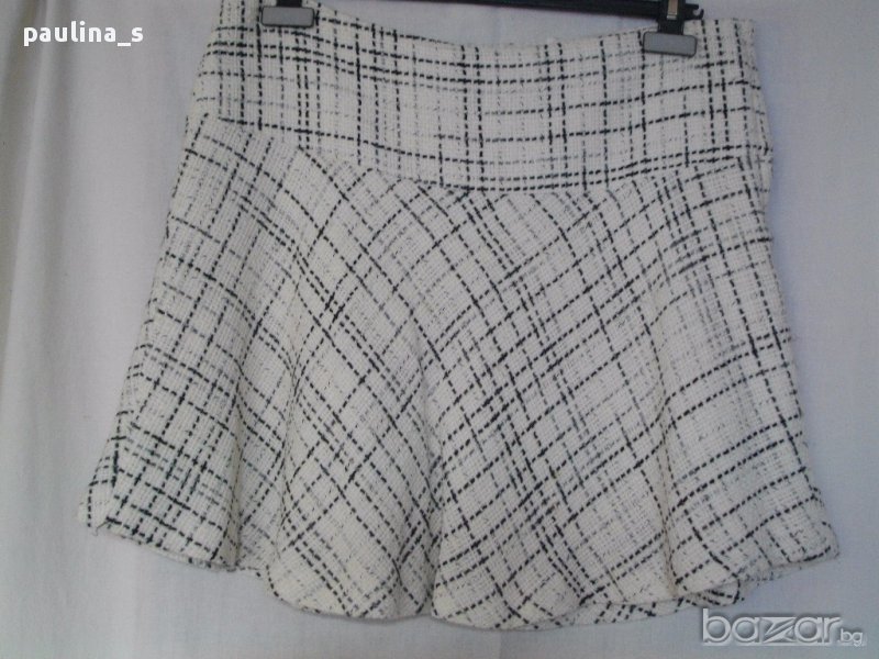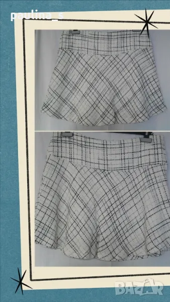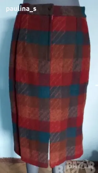Вълнена пола с хастар, в каре, класически модел, миди, с цепка. Платът е мъхест и много топъл, без дефекти и еластичност.