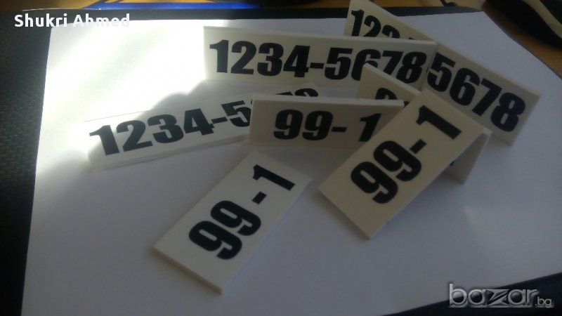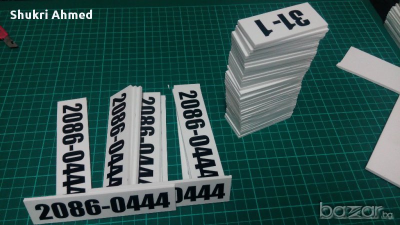 ВЪВ ВТОРА СНИМКА МОЖЕ ДА ВИДИТЕ ДЕБЕЛИНАТА НА ТАБЕЛКИТЕ /3 ММ/, КОЯТО ПРИДАВА УСТОЙЧИВОСТ НА ВСЯКАКВИ АТМОСФЕРНИ УСЛОВИЯ, ЗА РАЗЛИКА ОТ ТЕЗИ КОИТО СА РАЗПЕЧАТАНИ НА ХАРТИЯ И ЛАМИНИРАНИ, НАШИТЕ ТАБЕЛКИ ИЗДЪРЖАТ НА ДЪЖД, СЛЪНЦЕ, СНЯГ И НЕ ИЗБЛЕДНЯВАТ. ТЕ ОСТАВАТ ЗАВИНАГИ ТАКИВА, КАКВИТО СТЕ ГИ СЛОЖИЛИ.
